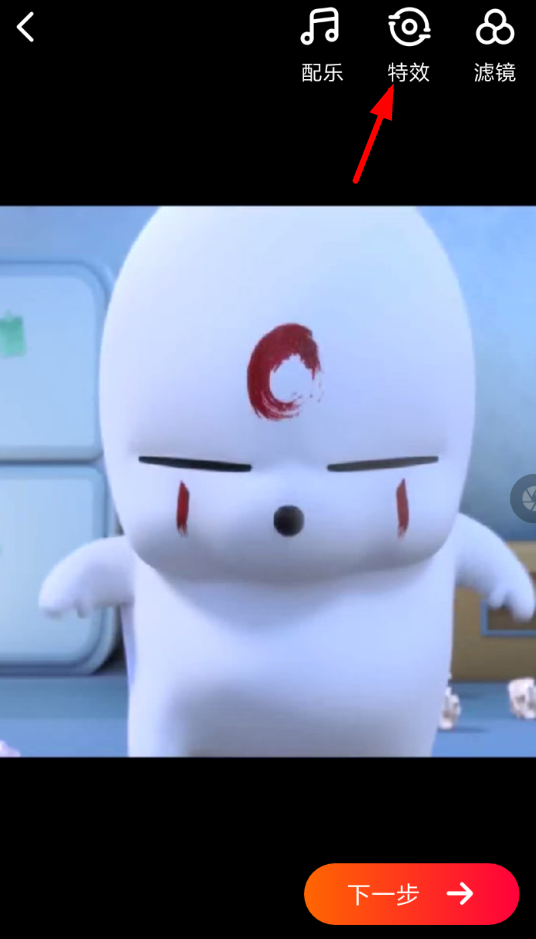 2、进入编辑页面后,我们可以选择右上角的“特效”功能,唤出特效列表,通过“时间特效”类别找到“逆时针”的效果。到