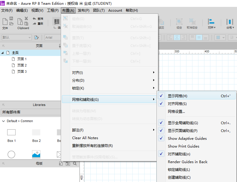 ? 2、点击布局,选择网格和辅助线,根据需要进行调试。网格和辅助线在设计中会起到辅助作用,如下图所示: