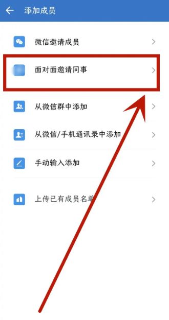 在添加会员界面,选择您想要邀请新同事的方式,以面对面邀请为例,点击进入。
