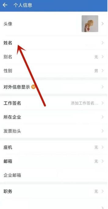 点击进入个人信息界面的姓名选项。