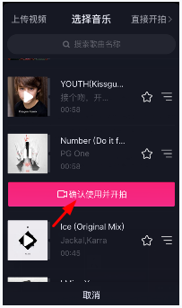 ? 3、点击选中的歌曲确认使用并开始拍摄;