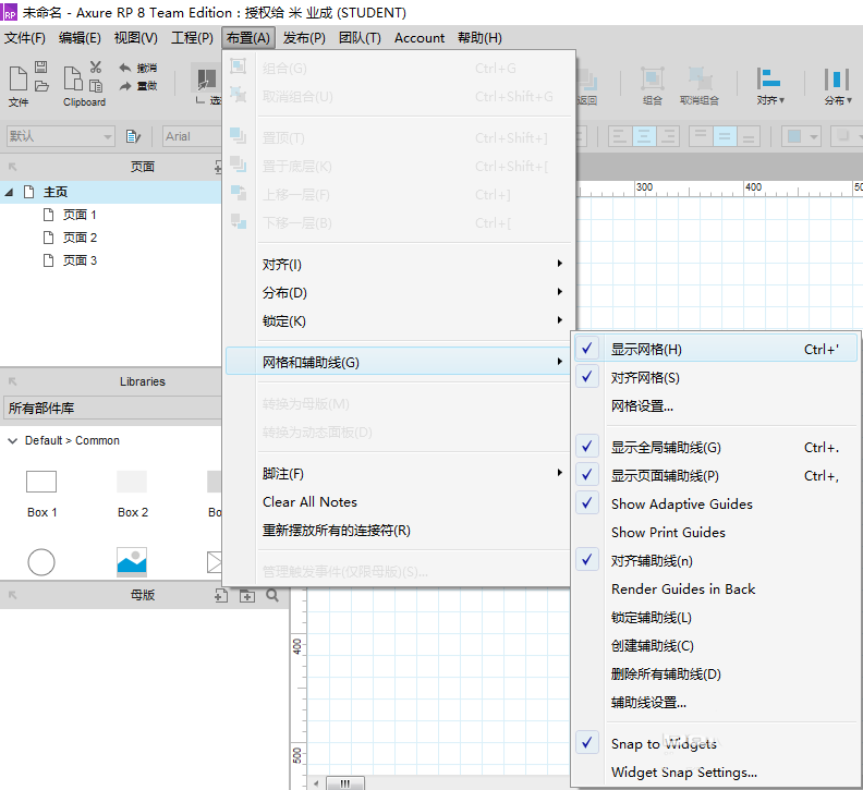 ? 2、点击布局,选择网格和辅助线,根据需要进行调试。网格和辅助线在设计中会起到辅助作用,如下图所示:
