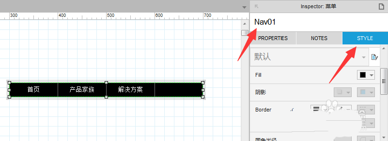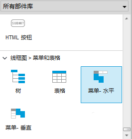 ? 1.导航时,选择库中的菜单-水平,并将其拖至设计区,如下图所示: