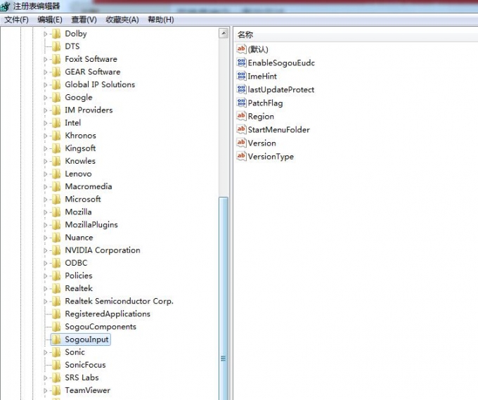? 32位机(XP、win732位)路径如下:HKEY_LOCAL_MACHINESoftWareSogouInput