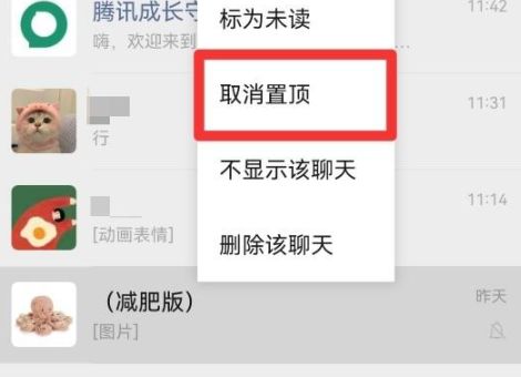 长按后,在弹出的选项栏中点击【取消固定】。