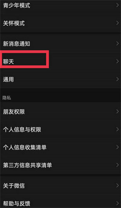 进入设置页面后,我们然后找到里面的聊天功能,如图所示。