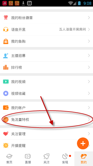 ? 2、点击右下角“我的”按钮,进入我的界面,选择“免费流量特权”服务!