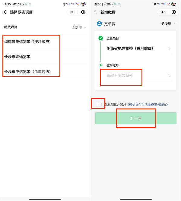4、选择支付项目,输入宽带账号,点击下一步,按照提示即可成功支付。