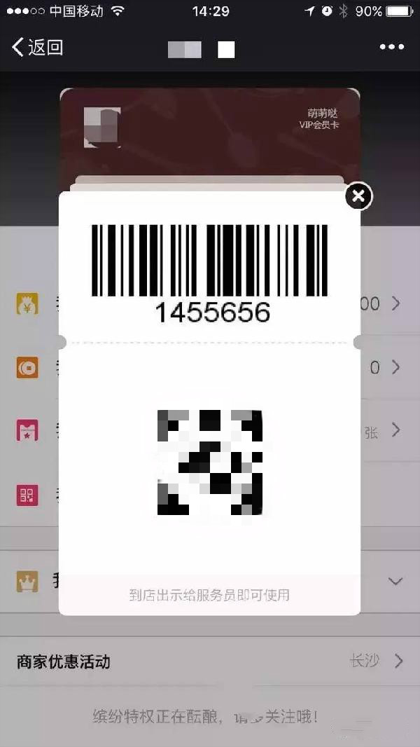 (向服务账号中的服务员出示二维码即可使用会员卡)