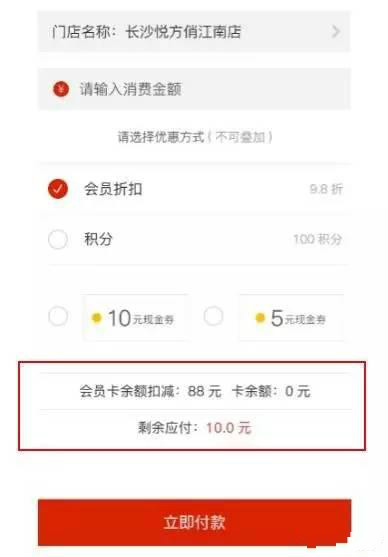市场上流行的储值卡。到店购物时,请出示实体会员卡或报备手机号码。如果会员卡系统使用微信服务号,则需要出示会员卡二维码。收银员通过后台系统进行操作。客户不能直接使用。支付卡上的剩余余额。