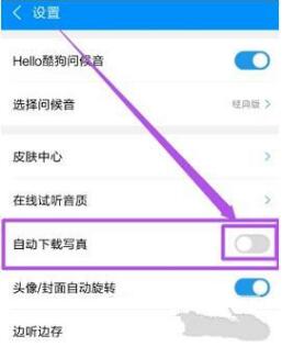 然后您可以在打开的页面中看到“自动下载照片”选项。默认情况下它是打开的。把它关掉。然后返回播放页面,搜索本地没有的音乐。这时,你可以发现歌手照片不再显示了。
