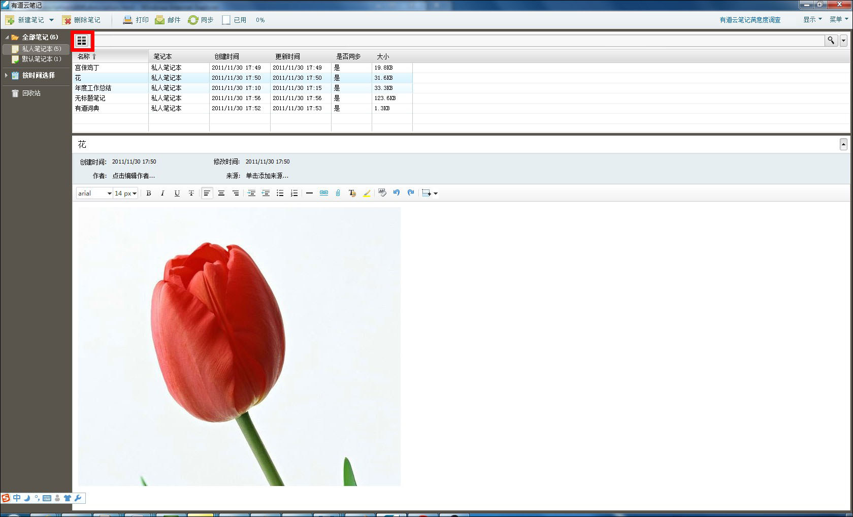 如图3所示,您还可以点击该区域左上角的图标切换到列表视图,然后可以更方便地查看笔记的创建时间、更新时间、同步等属性。到