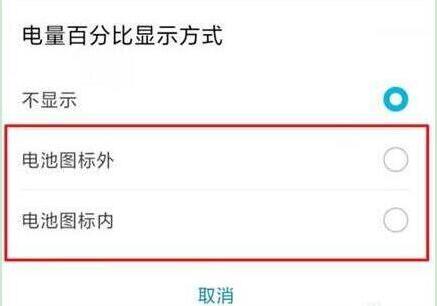 步骤5:点击勾选【电池图标外】,则在电池图标外显示电池百分比,点击勾选【电池图标内】,则在电池图标内显示电池百分比。到