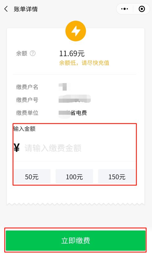 5、这里可以查看需要支付的账户名称、账号、支付单位。核对无误后,输入支付金额,点击立即支付,支付完成。