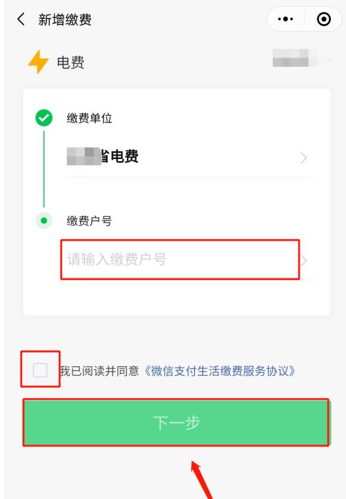 4. 输入付款帐号,勾选复选框,然后单击下一步。