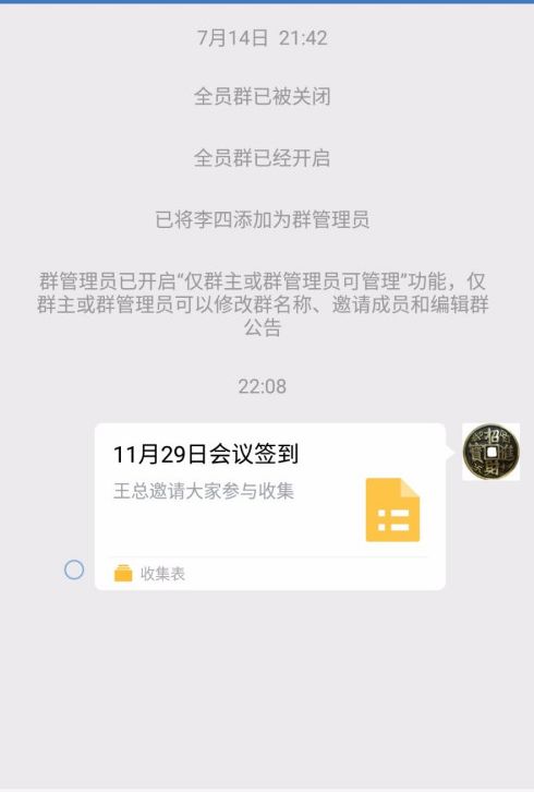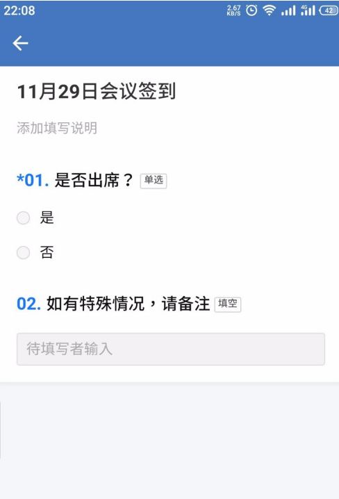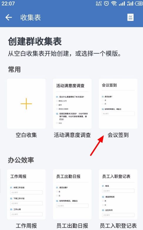 5. 在创建群组集合表单页面,以会议签到为例,点击会议签到;