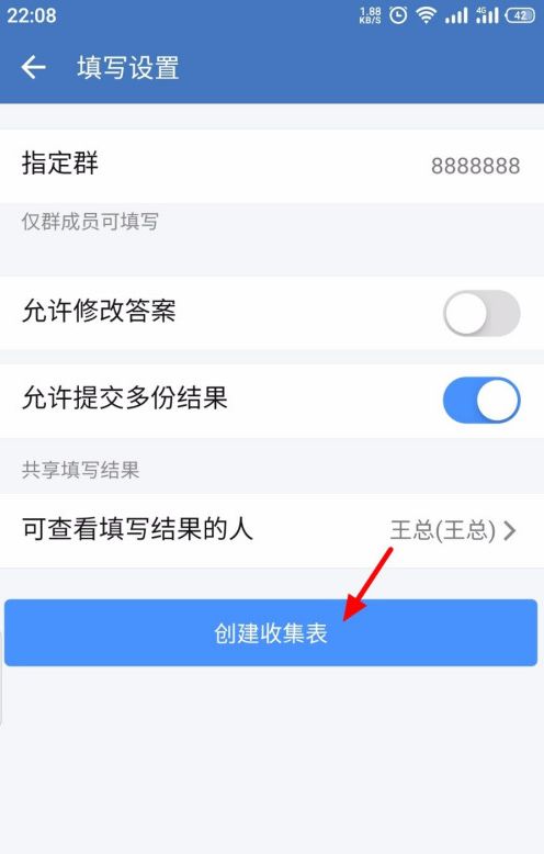7. 在填写设置页面,完成设置,点击创建收款表;