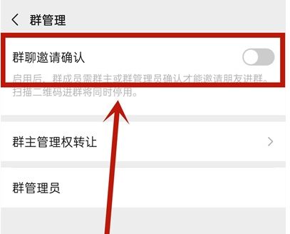 4. 打开【群聊邀请确认】后面的按钮。
