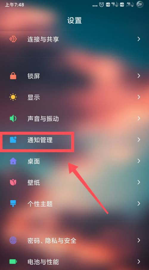 2.找到【通知管理】。
