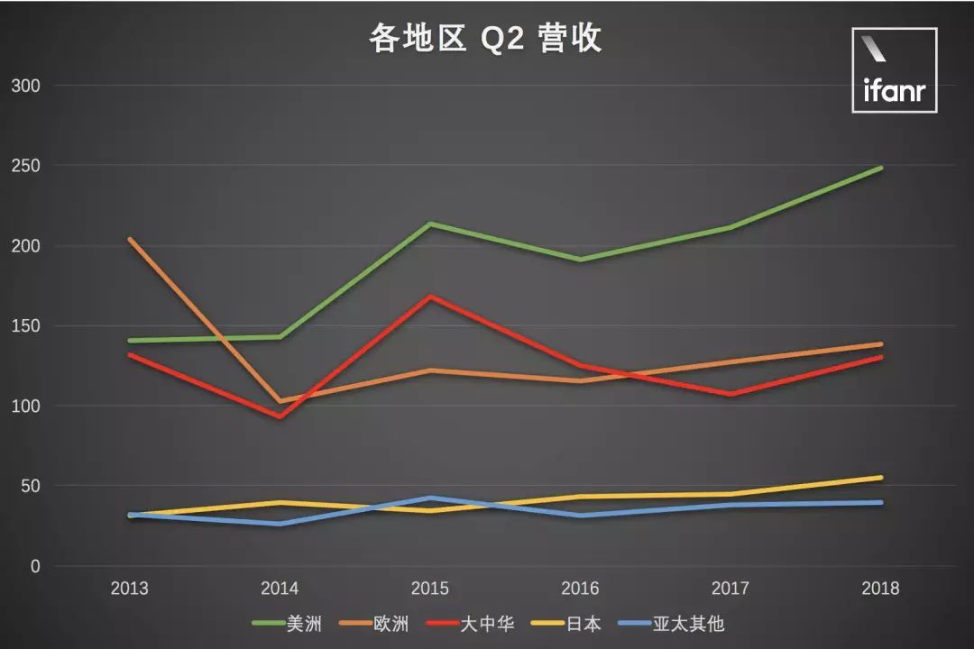 当收入按地区细分时,不同地区的增长水平不同。其中,大中华区和日本增幅最大,均超过20%: