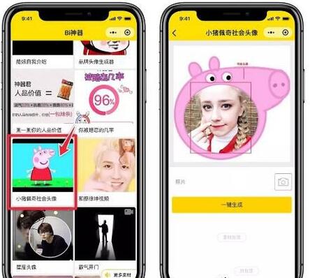 1.将“BIU神器”向下拉一点,可以看到一个“小猪佩奇社交头像”。这比头盔头像更容易操作,只需点击“照片”即可添加照片。