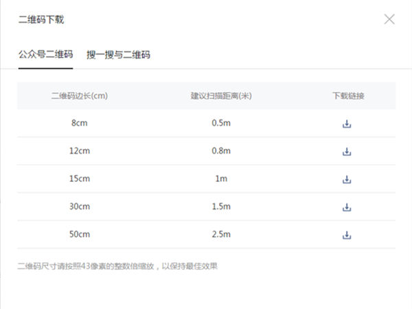 3. 选择所需尺寸并下载二维码图片。记得把格式改成jpg。二维码将由系统自动生成。