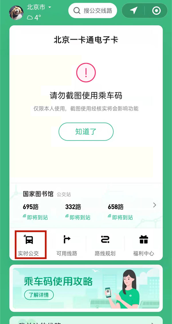 2. 如果我们有电子卡,只需点击“实时公交”即可。