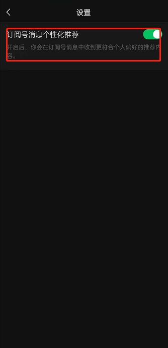 3、打开【订阅账号消息个性化推荐】右侧按钮。