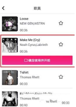 第四步,我们选择我们需要的音乐,点击确定即可使用并开始拍摄,如下图: