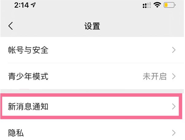 2. 点击【新消息通知】。