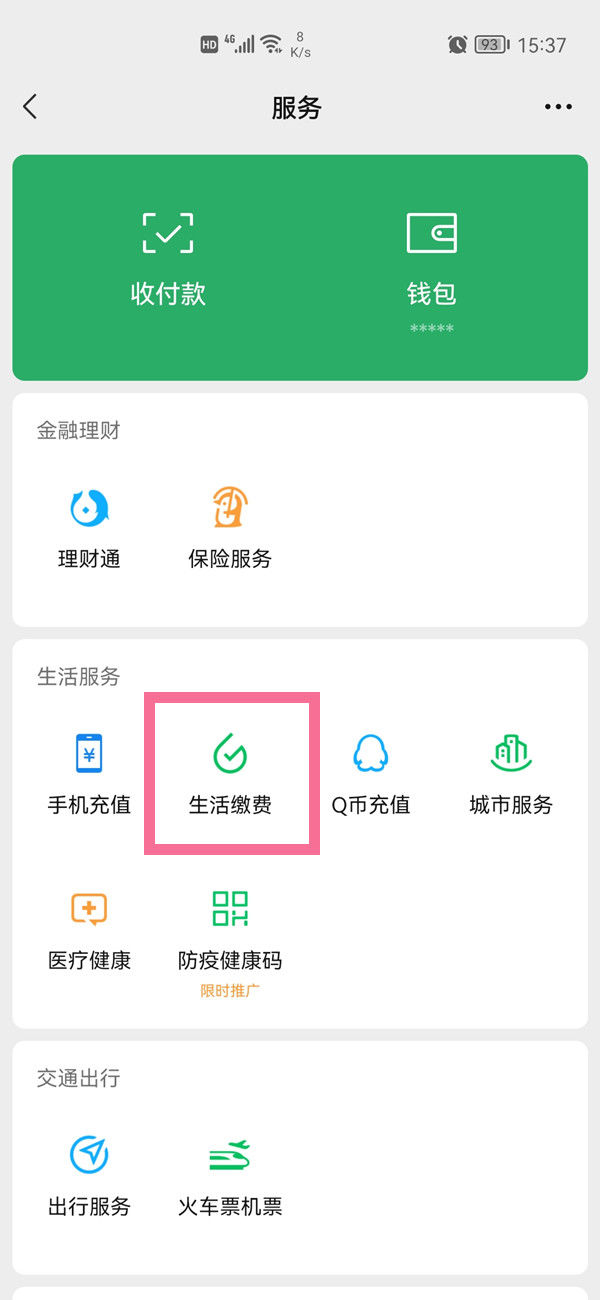 2. 在“生活服务”中点击“生活缴费”。