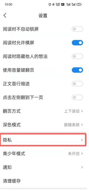 2. 单击隐私。