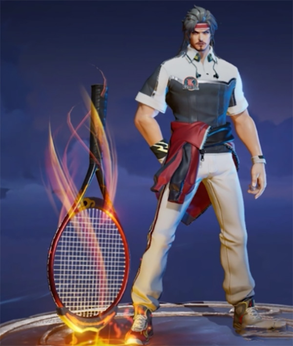 3.他的武器也经过创意设计,变成了酷帅的网球拍。曹操一手拿着网球拍,一手拿着网球,整体散发着强烈的运动活力。