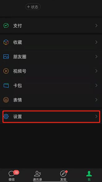 2. 选择设置。