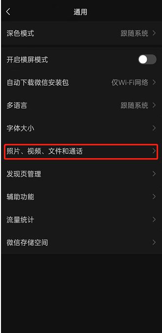 4. 找到【照片、视频、文件和通话】。