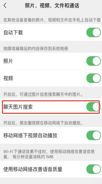 5. 选择【聊天图片搜索】并开启。