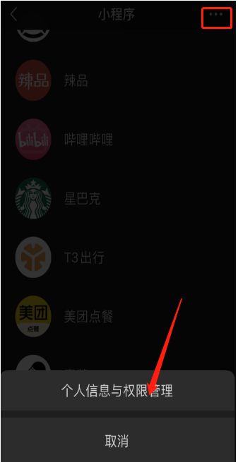 2. 点击上方三点,选择【个人信息和权限管理】。