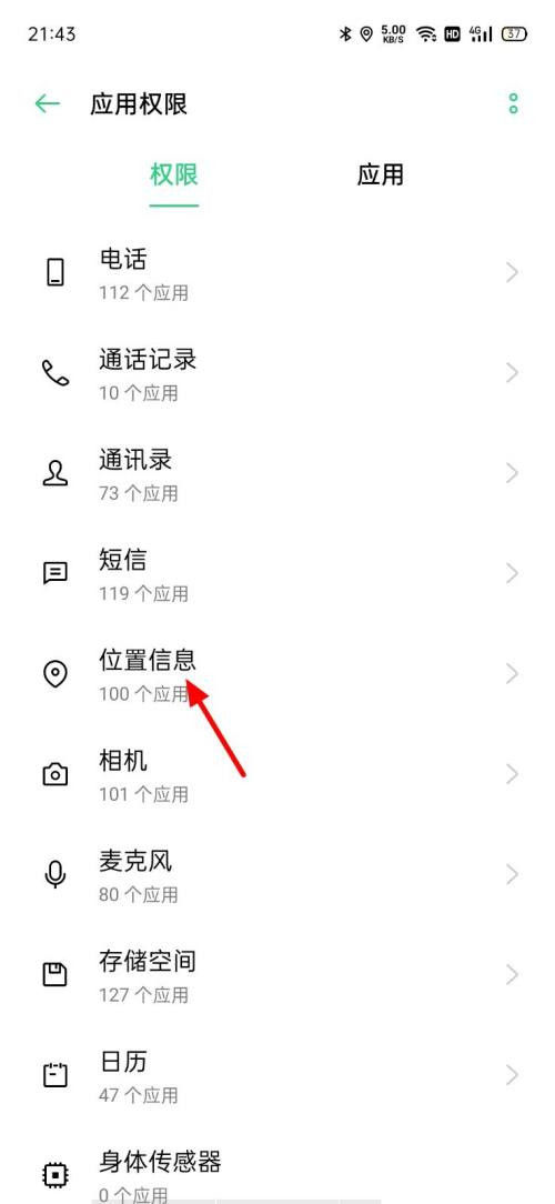 2、点击应用权限,找到【位置信息】权限。