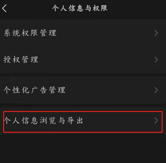 5.最后,在这里您可以看到个人信息浏览和导出选项。点击进入下载您的个人信息文件。