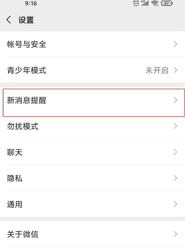 2. 在设置页面点击新消息提醒。