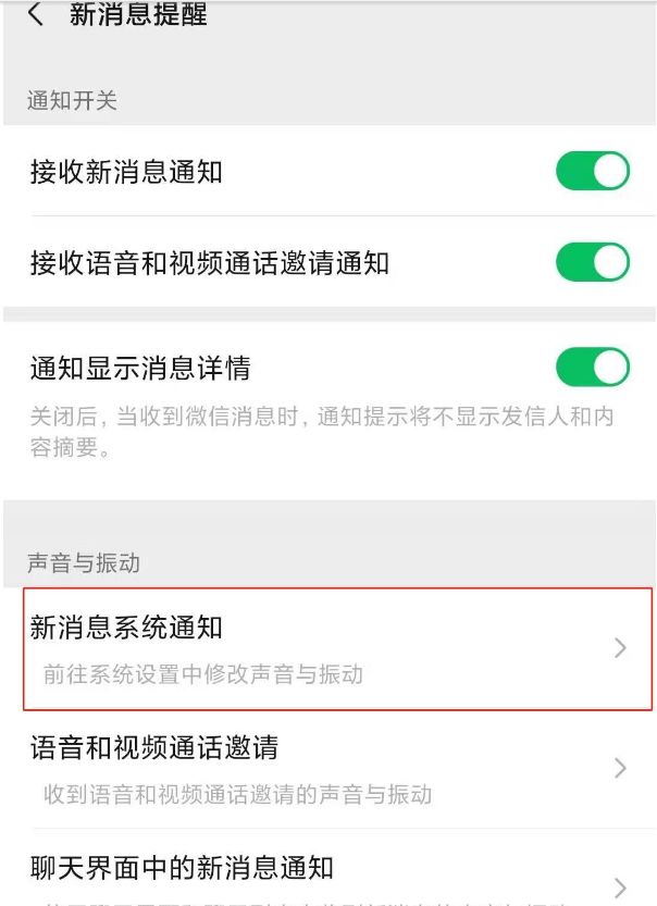 3. 然后选择新消息系统通知。