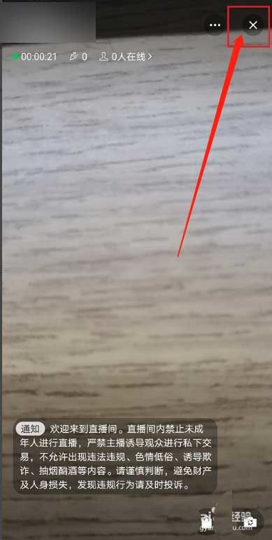 3、进入视频账号直播界面后,点击右上角的叉号