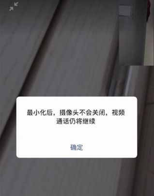 3、此时会出现“最小化后,相机不会关闭,视频通话将继续”的提示。单击[确定]。