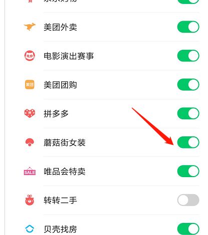 6、打开服务管理后,可以看到蘑菇街女装功能已开启。