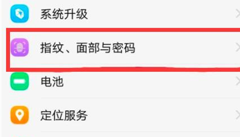第二步:在设置界面找到【指纹、人脸、密码】选项,继续点击;