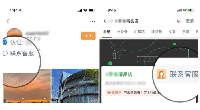 2、接入后,客户只要搜索视频号码,就可以看到联系客服的功能,点击联系官方客服。
