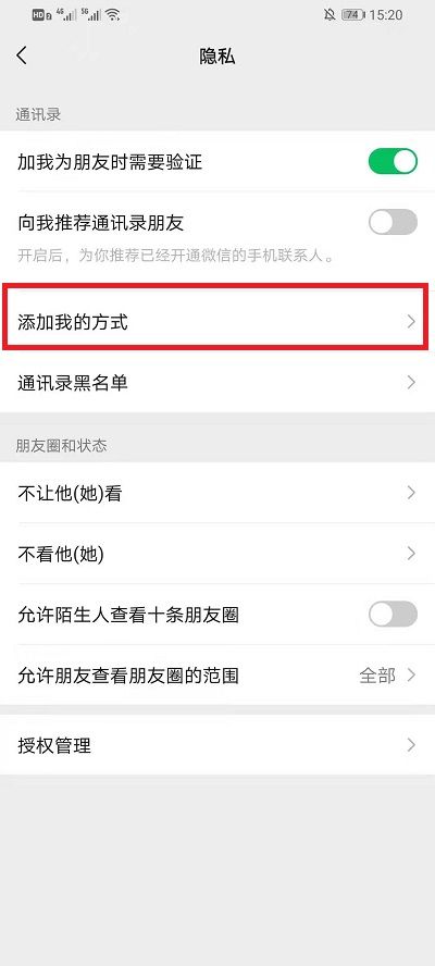 4、在【隐私】界面,我们需要点击【添加我的方式】进入界面;