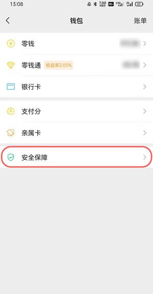 3.点击钱包底部的【安全】设置;