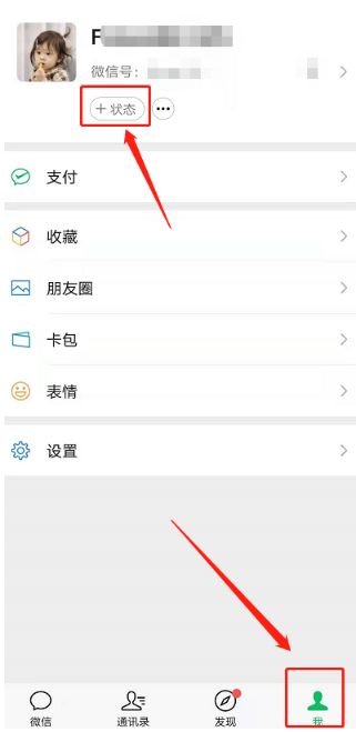 1. 打开微信“我的”页面,点击个人资料下的“状态”。