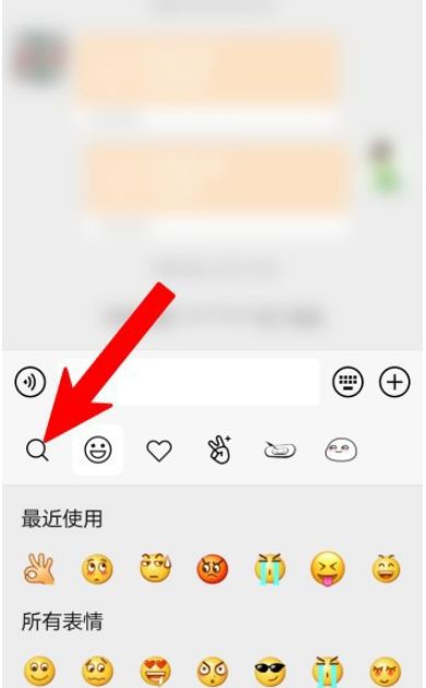 2. 进入聊天框,单击表情图标,然后单击搜索图标。
